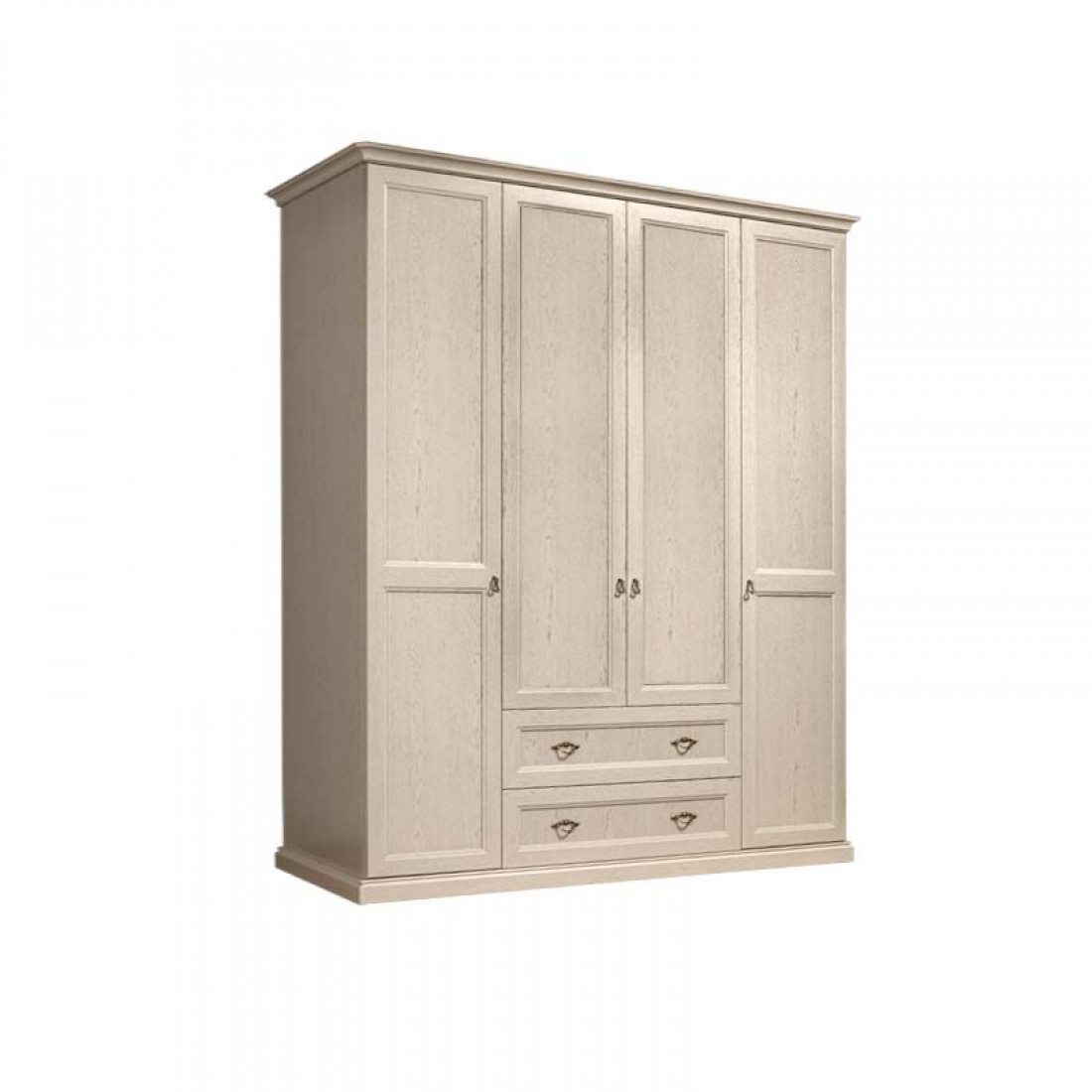 Четырехдверный шкаф для платья и белья с выдвижными ящиками ВНШ2/41 изготовлен из ламинированной плиты Эггер (Австрия), а также плиты совместного итальянско-российского производства «Карелия ДСП», являющегося лучшим в России производителем мебельных плит, и покрыт итальянским лаком превосходного качества.