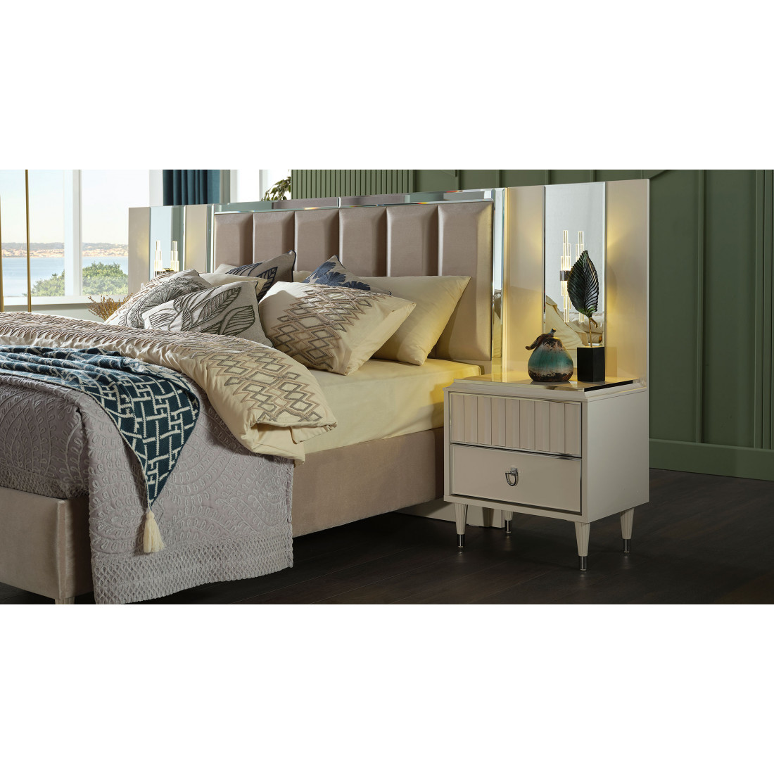 Дополните  двухспальнюю кровать Gravita (Гравита) GRAV-26от турецкого бренда BELLONA  соответствующими атрибутами для спального гарнитура.