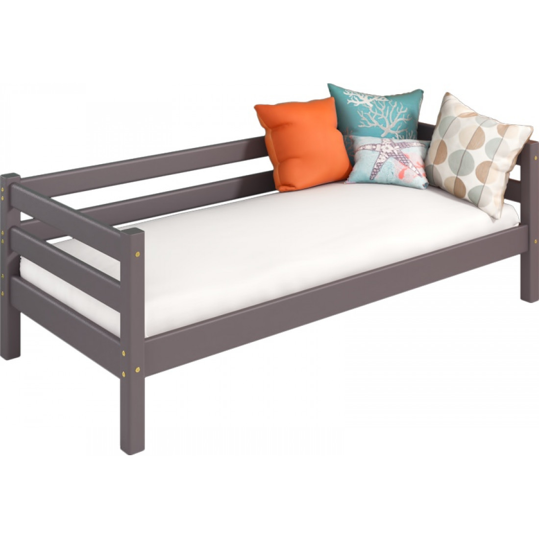 Кровать выполнена из массива дерева, может комплектоваться выкатными ящиками и аксессуарами из текстиля. Отделка выполнена эмалью AqaLAC с добавления красителя цвета "Лаванда".