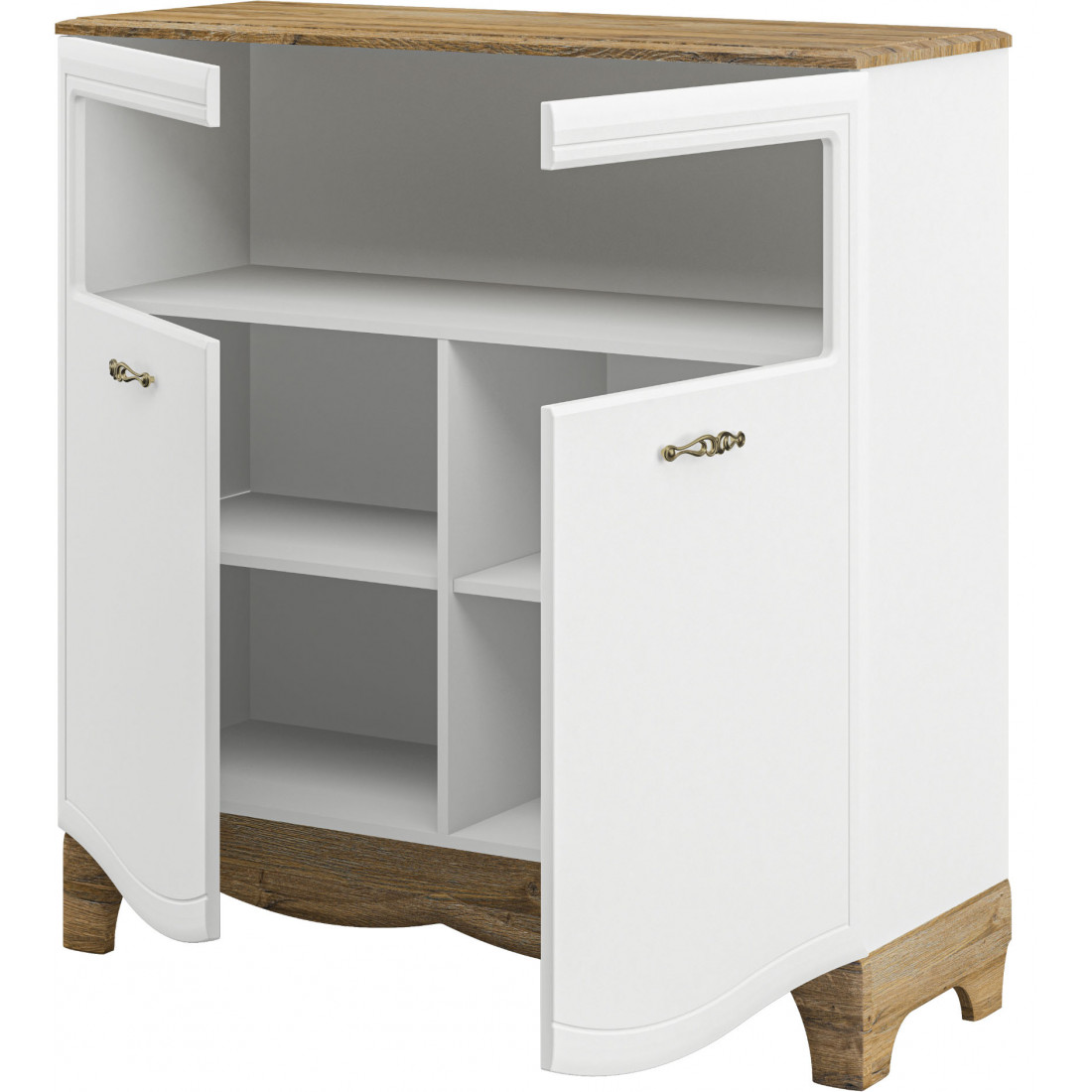 - Цвет ЛДСП - «белый», цвет ЛДСП полки - «дуб ниагара», 16мм, 25мм Kronospan Szczecinek (Польша), соответствие с нормами EN 316 и требованиями норм EN 622-5.