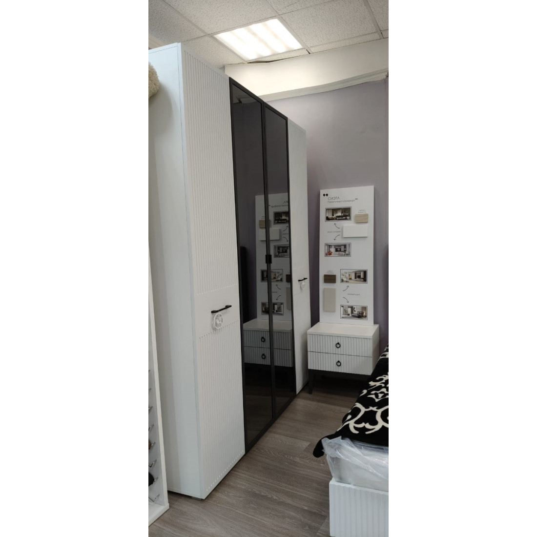 ПВХ цвета «Белый матовый»; -Ящики на выдвижных механизмах скрытого монтажа;