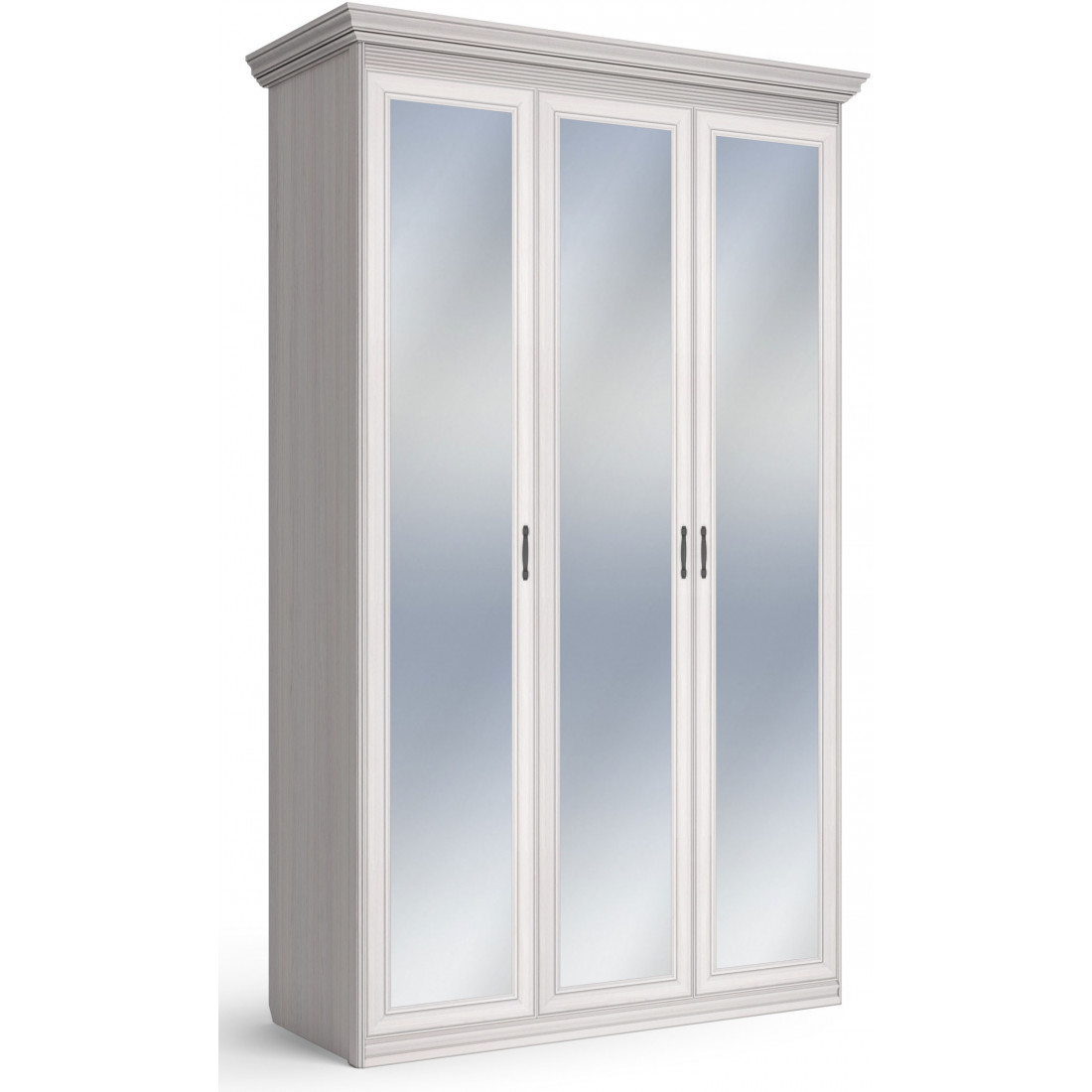 Шкаф 3-х дверный зеркальный Неаполь Ясень анкор светлый (патина "серебро")
