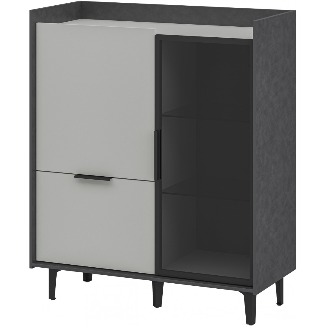 Шкаф Модена — это стильное решение для вашей гостиной с двумя уникальными отделениями. Подчеркните ваш дизайн, выбрав цвет из трех вариантов: Белый-Дуб Элисон, Лунный камень-жемчуг, Металл Бруклин-лунный жемчуг. Ножки из металла обеспечивают устойчивость. Первое отделение предлагает большой ящик и полки для удобного хранения разнообразных предметов, а второе — элегантные стеклянные полки и фасад из темного стекла, придающие шкафу изысканный вид. Шкаф Модена — идеальное сочетание функциональности и эстетики для вашей гостиной