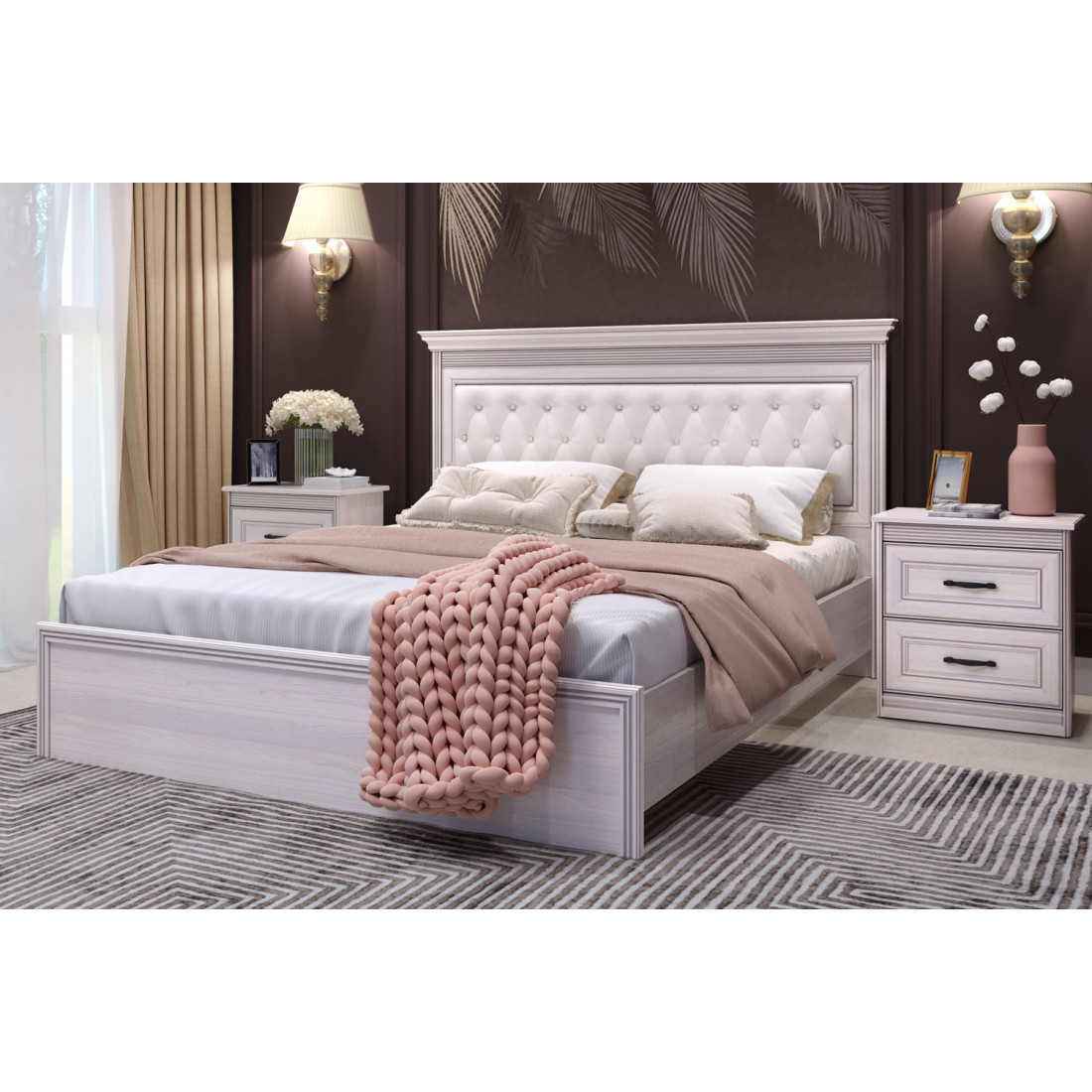 - Кровать 1400/1600/1800 с ортопедическим основанием Неаполь Ясень анкор светлый (патина "серебро") экокожа polo белая (1 шт.)