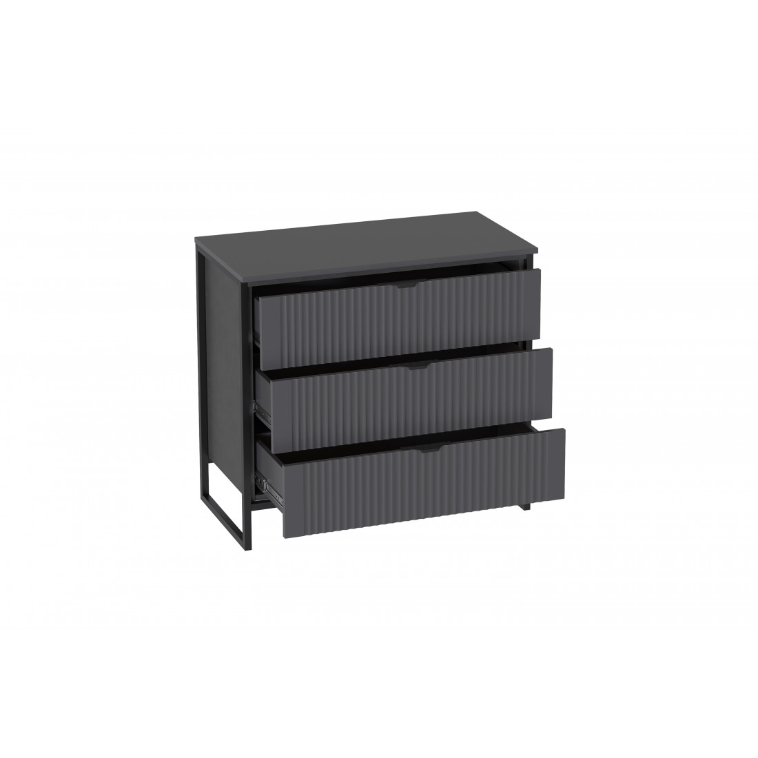 Корпус изделий выполнен из качественного, безопасного ЛДСП 16 мм цвета "Металл Бруклин", фасады из МДФ 16 мм цвета "Графит". Толщина металлических опор - 20 мм.