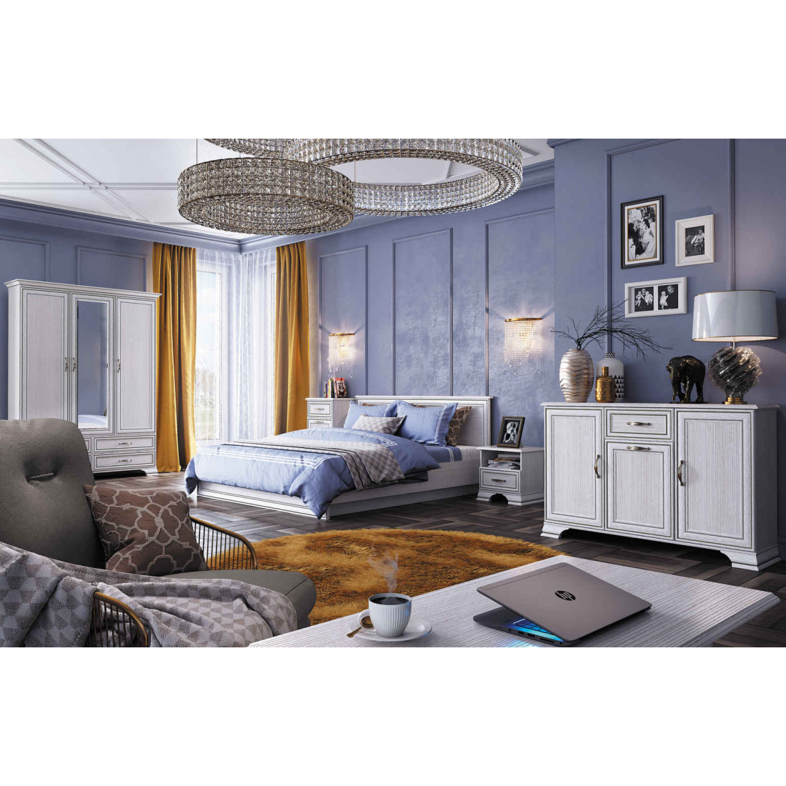 Спальня Тиффани - это классика, которая всегда остается модной и стильной. Сочетание светлого оттенка с древесной структурой, нежных фасадов, обрамленных изящными планками с патиной и качественных металлических ручек создадут атмосферу тепла и уюта, а возможность использования подсветки делает эту коллекцию особенно привлекательной. Основное достоинство TIFFANY - эстетическая функциональность, которая роскошно дополнит различный по назначению интерьер.