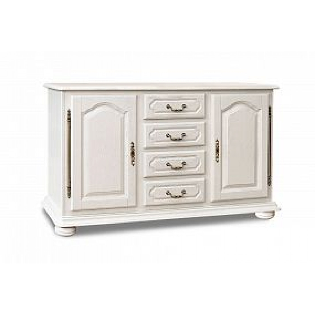 Классическая тумба с выдвижными ящиками и дверцами для гостиной из коллекции мебели "Давиль". Выполнена из массива древесины дуба, декорирована фрезерованием. Выполнена в цвете "Белая эмаль".